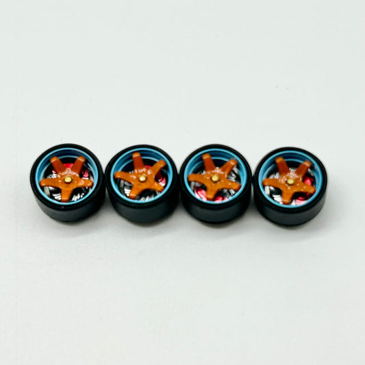 9.5mm Orange Lip 5 Spoke Alloy Bearing Wheels ( Spinners)