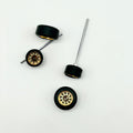 #1007 Gasser “swirly” gold wheels features thin swirly spokes with14mm slick rear tires and 10mm low profile front tires.