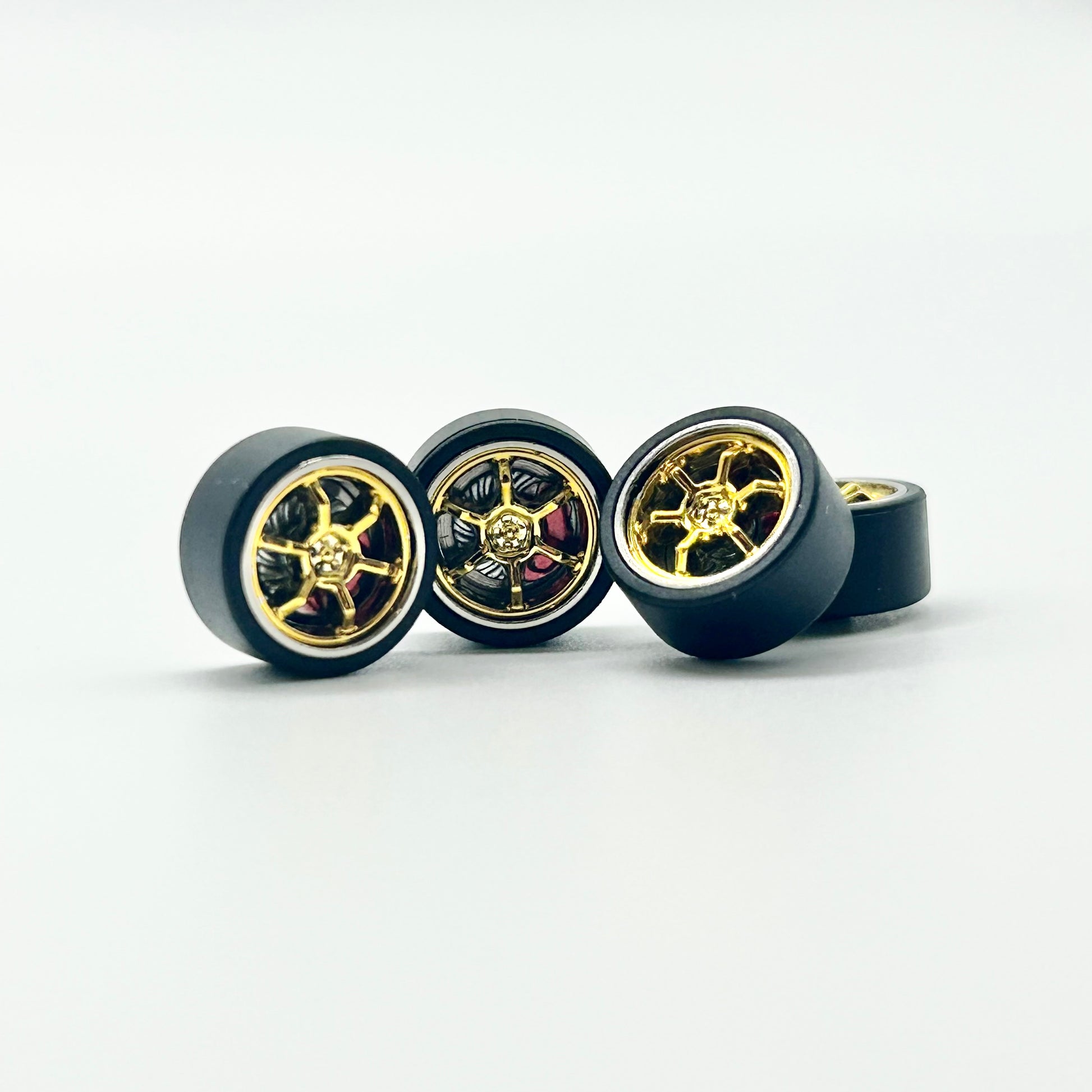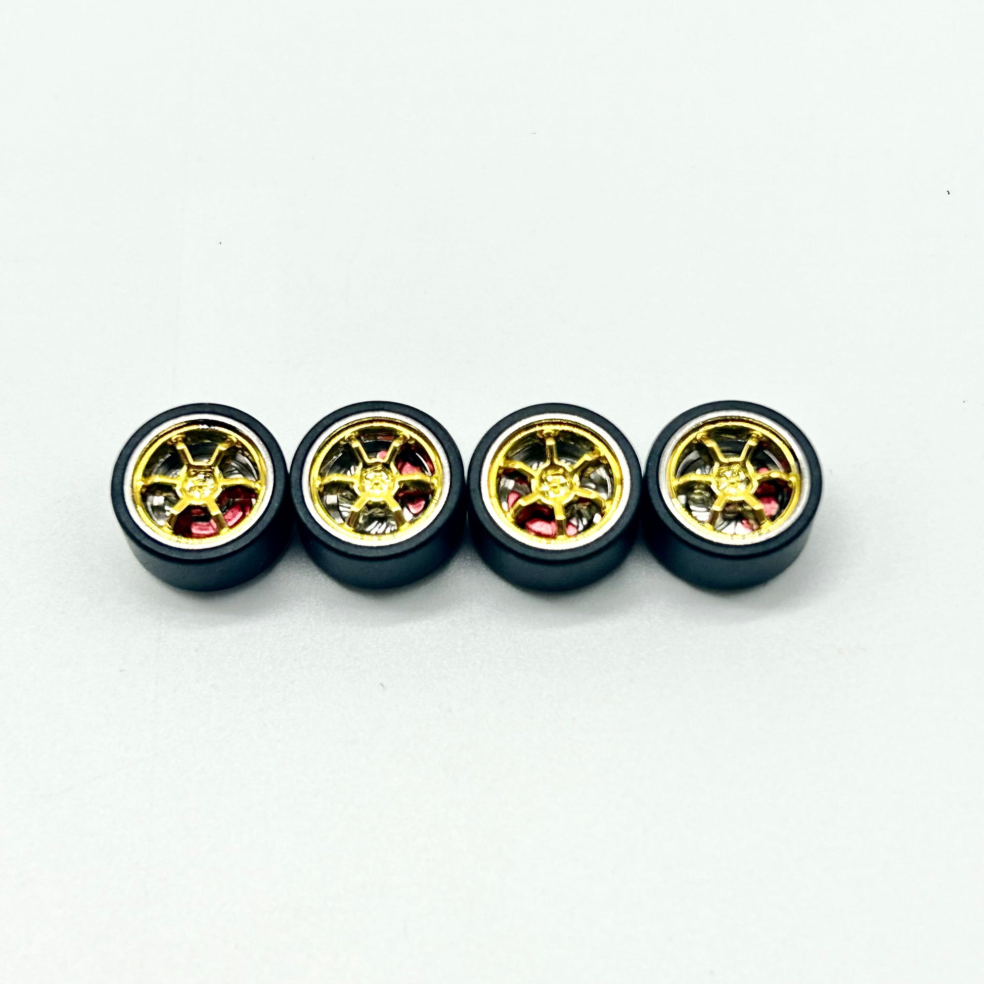 11mm Gold/Red TE37 Style Alloy Bearing Wheels - Spinners