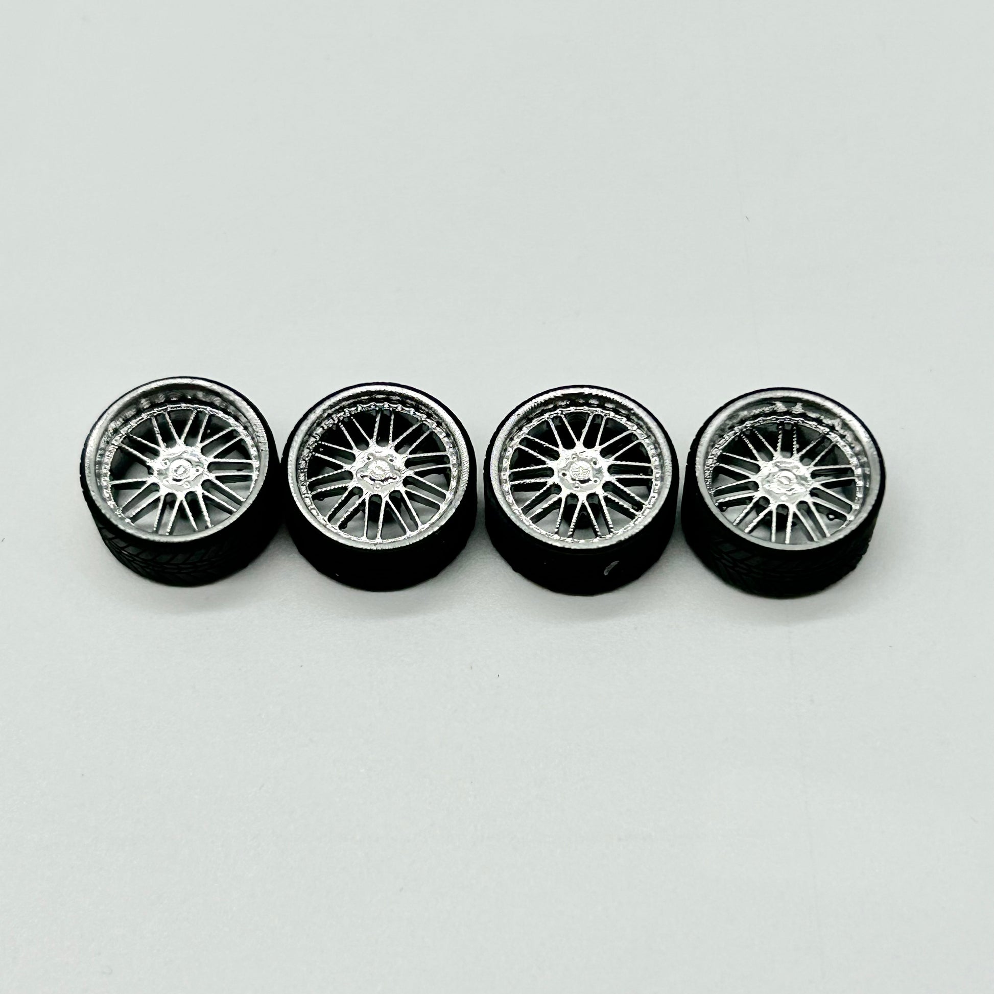 Simmons replica wheels. Staggered style, perfect for squads body trucks, OBS or larger 1:64 scale cars.