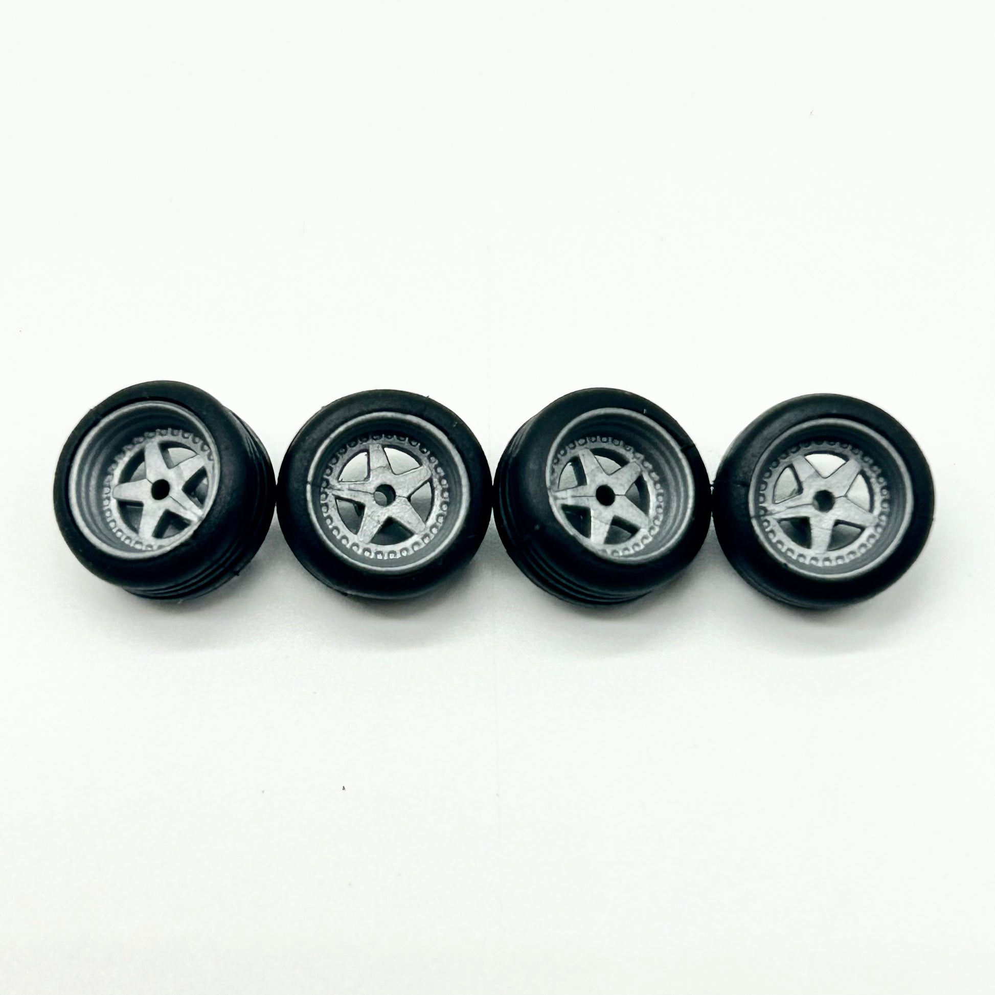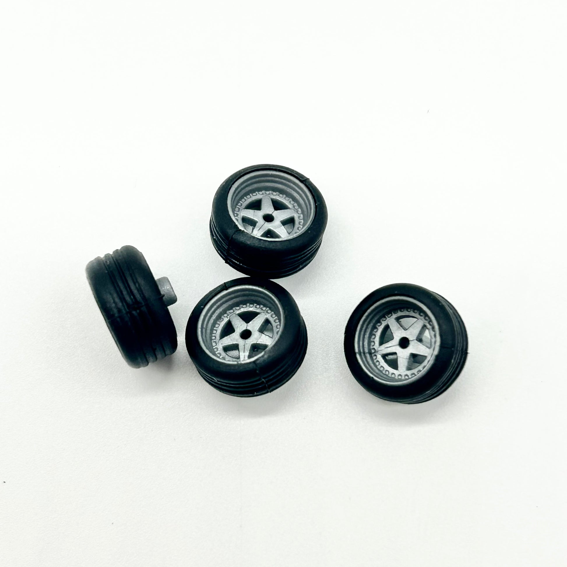 #877 12mm “Gun Metal” Porsche Style Wheels with Rubber Tires