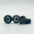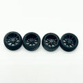 FUEL branded rep wheels for 1:64. All black on black with large off-road tires. Incudes axles.