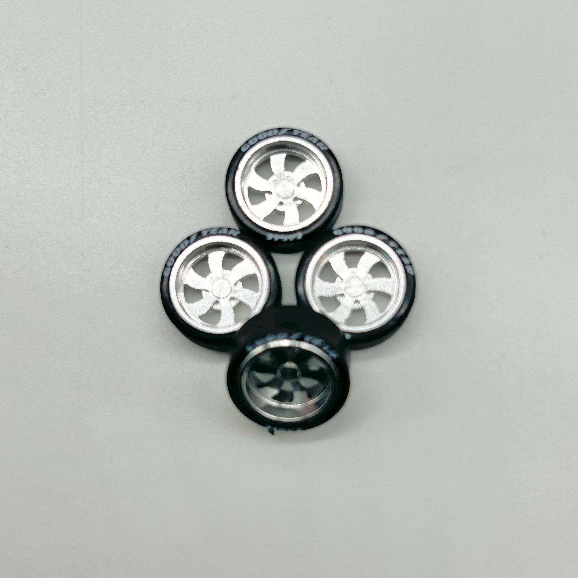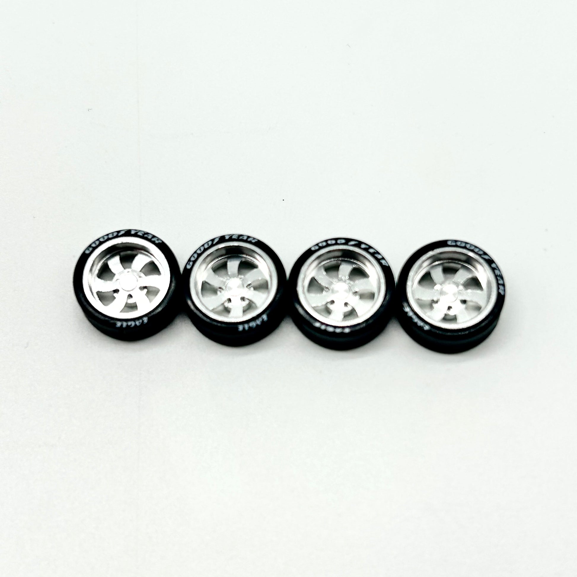 All new chrome 6 spoke Rucci style smooth spinning wheels for 1:64 scale.
